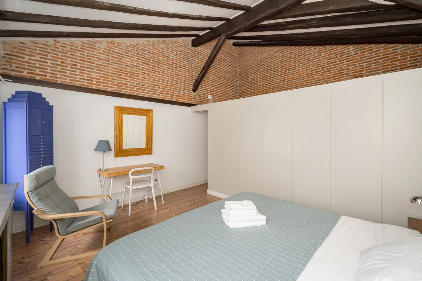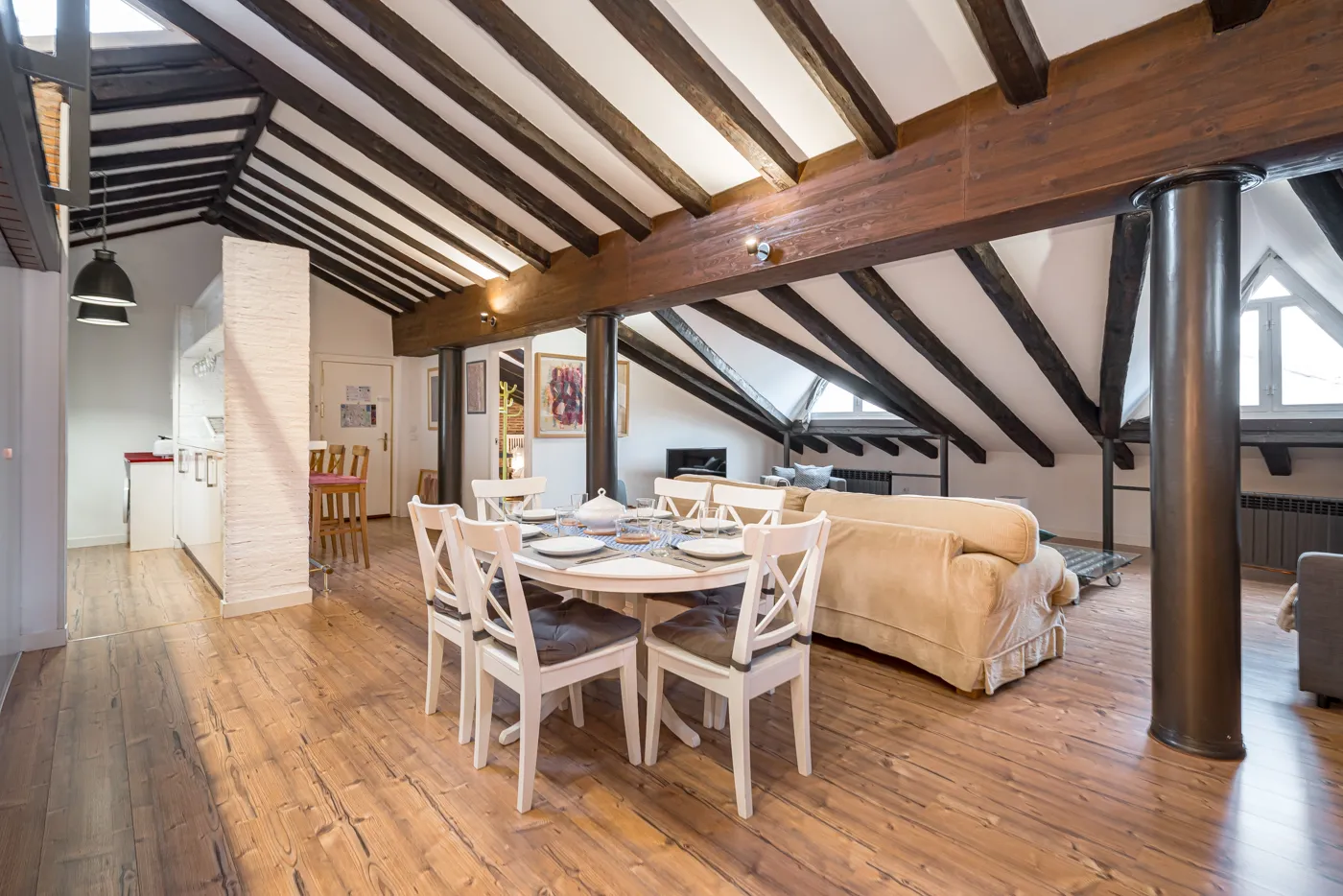 Disfruta de una estancia única en esta buhardilla de 180 metros cuadrados, ideal para familias o grupos que buscan amplitud, confort y una ubicación privilegiada. El apartamento cuenta con 2 dormitorios independientes, un comedor amplio y un salón excepcionalmente grande y acogedor, desde el que se pueden disfrutar de vistas espectaculares a zonas de interés de la ciudad. También dispone de un baño completo con bañera y artículos de aseo gratuitos.