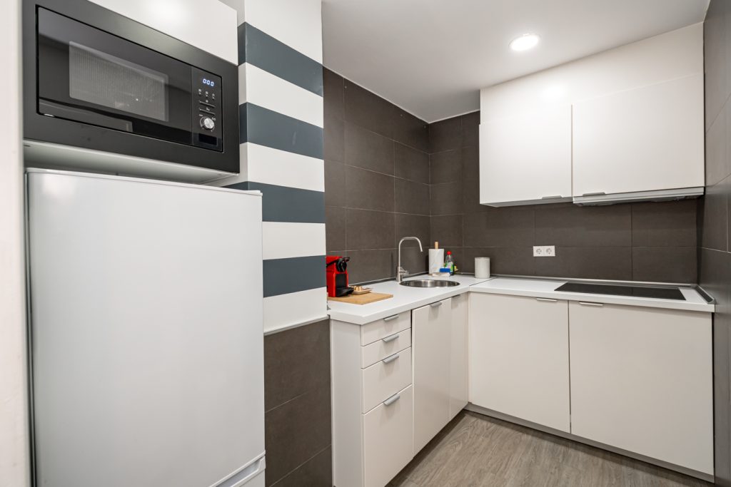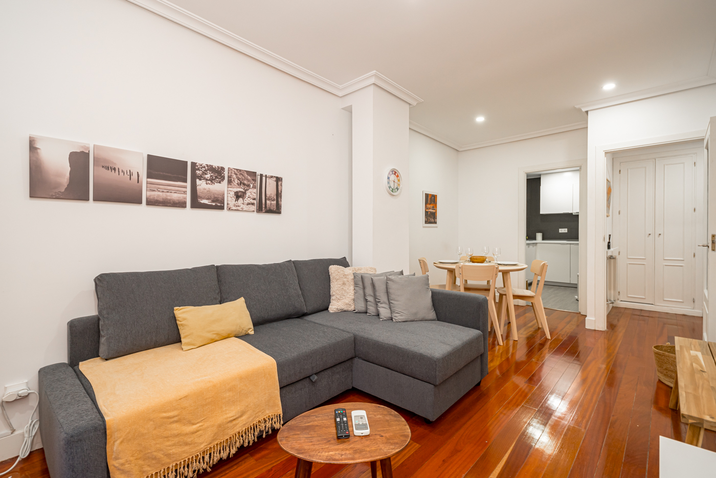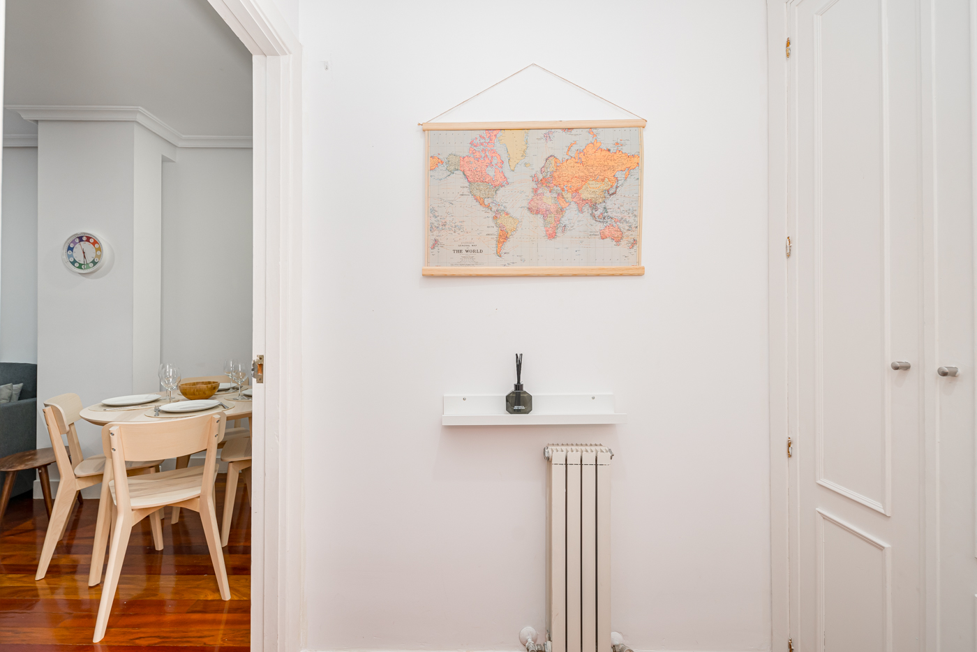 La cocina está equipada con fogones, horno, microondas, nevera, lavavajillas y utensilios de cocina. El apartamento incluye TV de pantalla plana con servicio de streaming, radio, suelo de madera o parquet, patio, lavadora, secador de pelo y productos de limpieza. Es un apartamento privado e independiente en un edificio con acceso a pisos superiores por ascensor y dispone de tendedero.